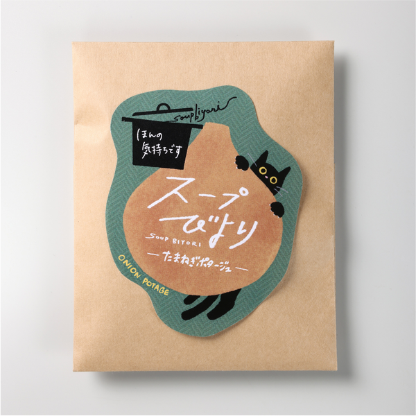 化学調味料(アミノ酸等)、保存料を使用せず、甘すぎず、スープやパスタソー ス、ドリアなどにも応用可能な、夕食向けのポタージュスープです。 愛らしいねこと野菜をモチーフにしたパッケージに、「ほんの気持ち です」のメッセージ入りです。